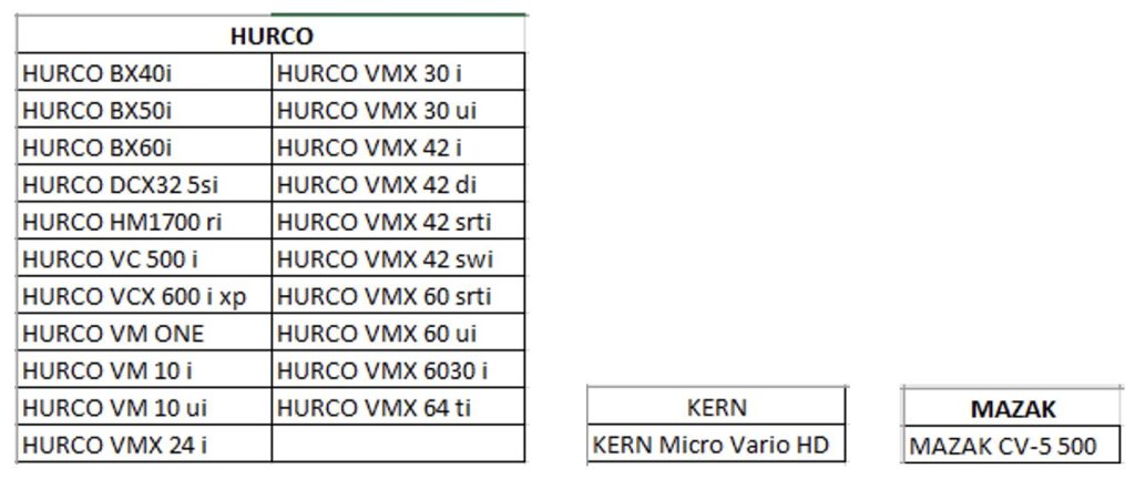 Además, tendrá archivos de configuración disponibles para algunos de los principales fabricantes de máquinas:
