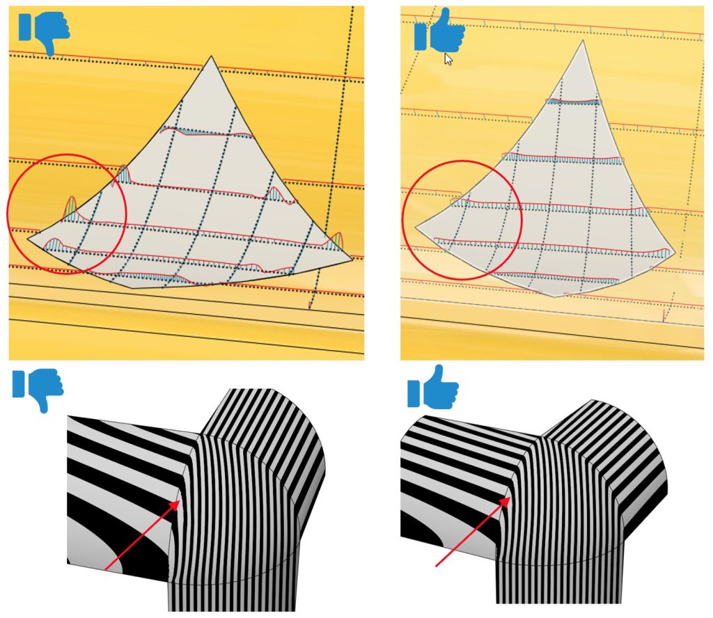 Para aquellos de ustedes que son nerds emergentes, miren esto. Actualizamos nuestro algoritmo de superficie que ahora las transiciones entre la superficie original y la superficie parcheada han mejorado enormemente. Además, los parches de superficie anteriores que no se comportaban bien ahora deberían comportarse mucho más de lo que cabría esperar. Puede que esto no parezca mucho en la superficie (sin juego de palabras), pero es un paso importante para sentar las bases para futuras mejoras que planeamos llevar al entorno de superficie de Fusion 360 (será increíble).
