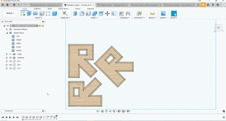 En la Vista previa de arreglos avanzados, hemos reducido significativamente el número de clics necesarios para especificar la dirección del grano de la pieza y las rotaciones permitidas. Ya no necesita desmarcar tres casillas diferentes para cada objeto que no desea rotar. El cuadro de diálogo organizar ahora tiene una configuración de Rotación global que se aplica automáticamente a todos los objetos seleccionados. Entendemos que una configuración global puede no funcionar en todos los escenarios. Para proporcionar flexibilidad y control adicionales, también hay una anulación a nivel de componente que le permite establecer una asignación de rotación explícita para los objetos.