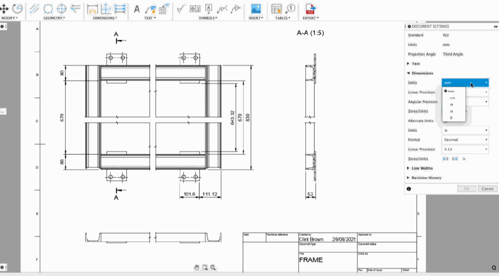 Hemos agregado metros, centímetros y pies en la lista disponible de unidades de dimensión, uniéndonos a los rangos de pulgadas y milímetros. Si elige pulgadas o pies como unidades de dimensión, también verá opciones adicionales como Tipo de formato (Decimal, Fraccional, Ingeniería o Arquitectura), Precisión lineal y Precisión angular. También puede mostrar sus unidades, así como las unidades alternativas para esa flexibilidad adicional.